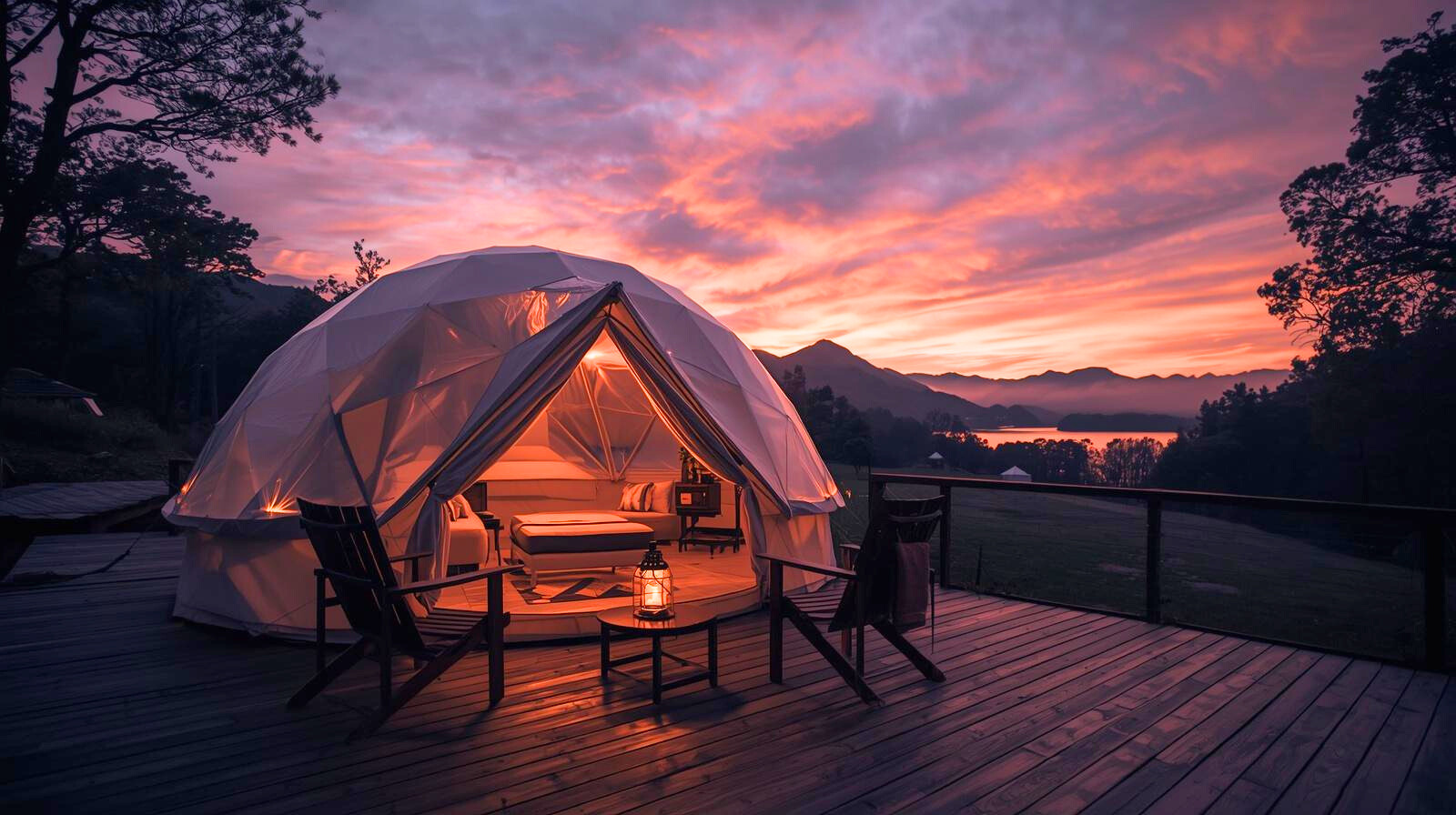 ドーム型テントは天窓から星空が見える。コテージは家族向けで設備が充実。トレーラーハウスはカップル向けでプライベート感が高い。全国に500施設以上あり、「次はどこ行こう」と選ぶ時間が楽しくなります。