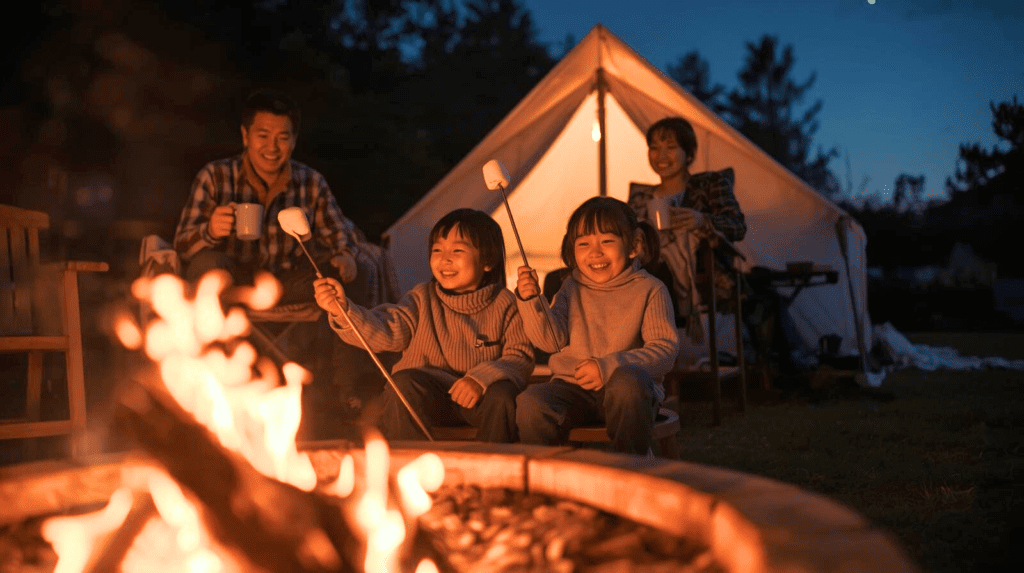 ファミリー向け施設なら子供用アメニティや遊具が充実。キャンプと違って設営不要なので、子供から目を離さずに済みます。子供が焚き火でマシュマロを焼く体験は一生の思い出になります。