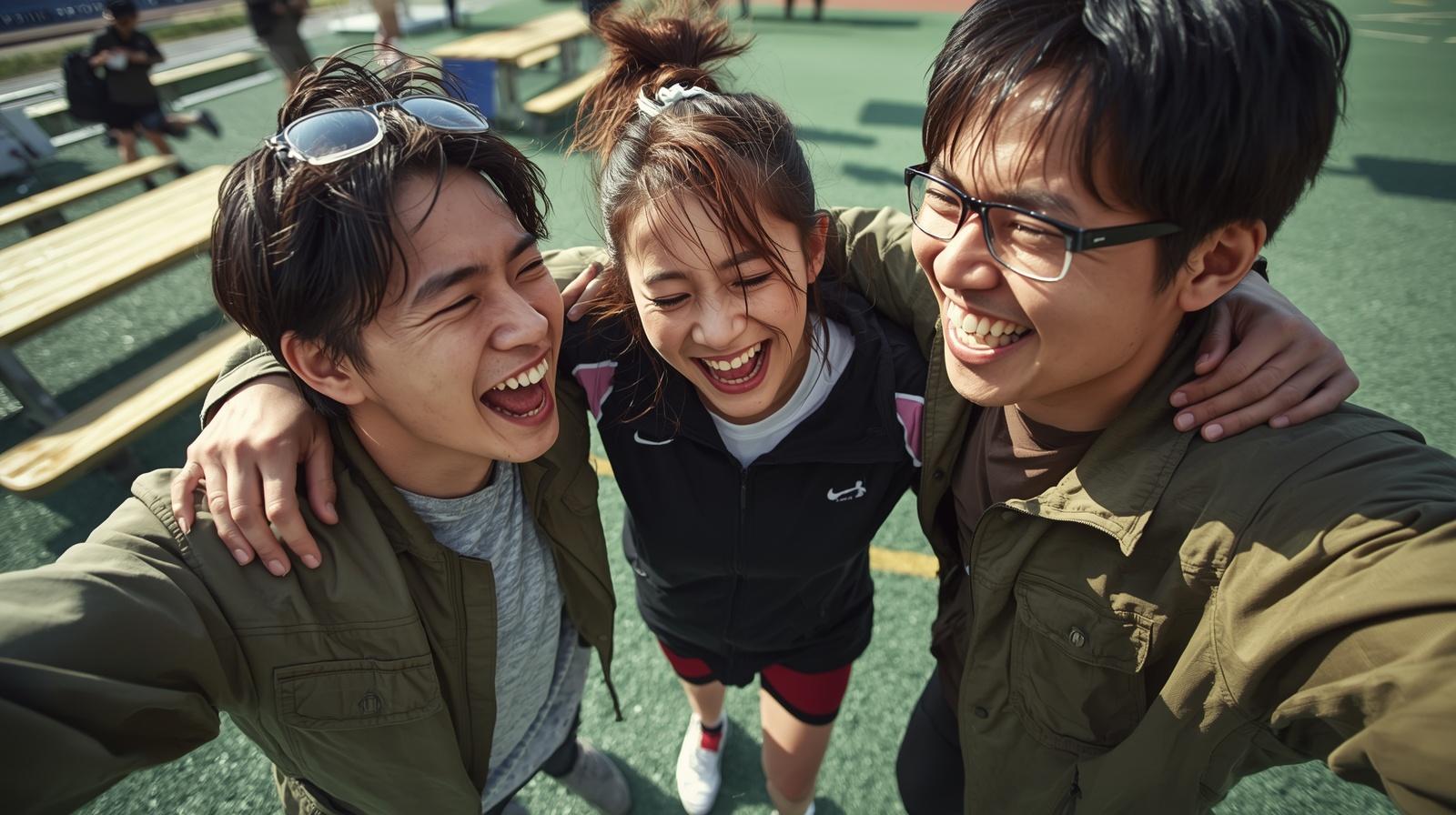 - 作戦がハマった瞬間——知らない人と、子どものように笑ってる