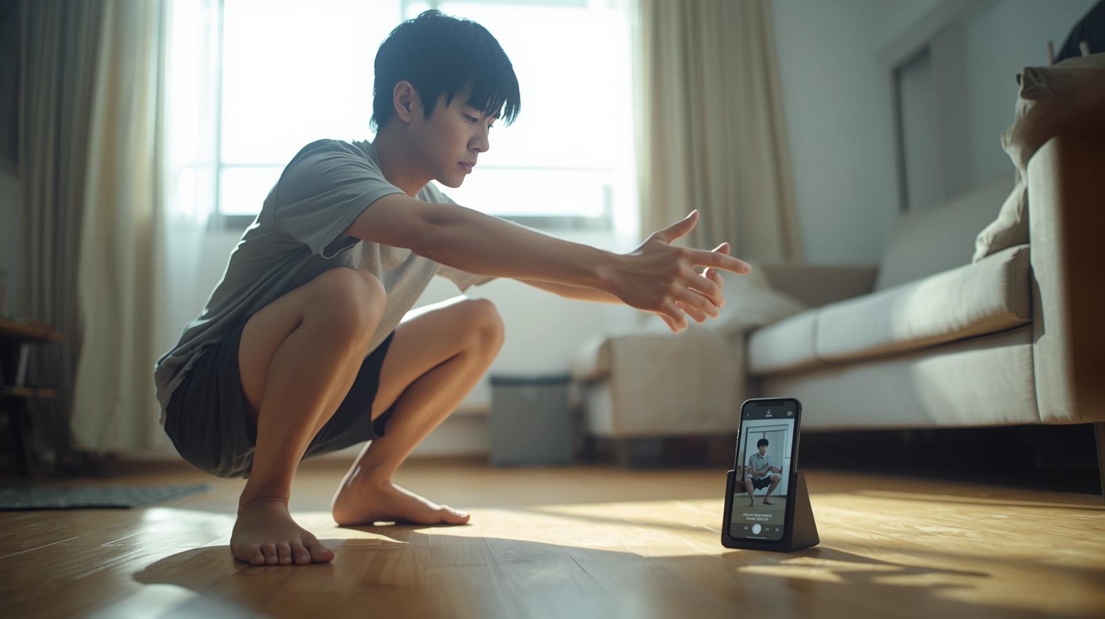 - 動画サイトで「自重トレ 初心者 フォーム」と検索。まず各種目10回×2セットから。全部やっても15分で終わります。初日は「正しく動けた」だけで合格です。